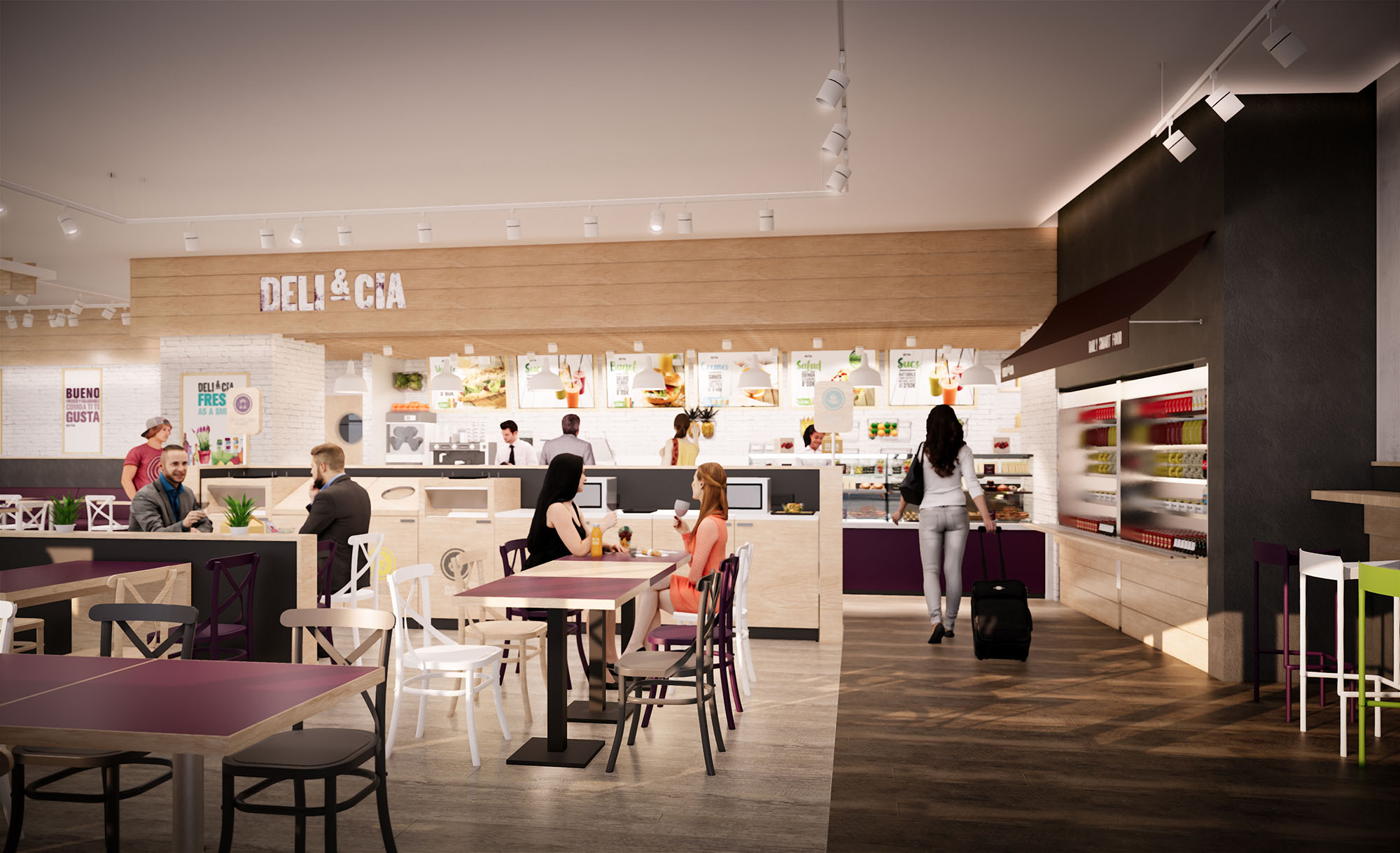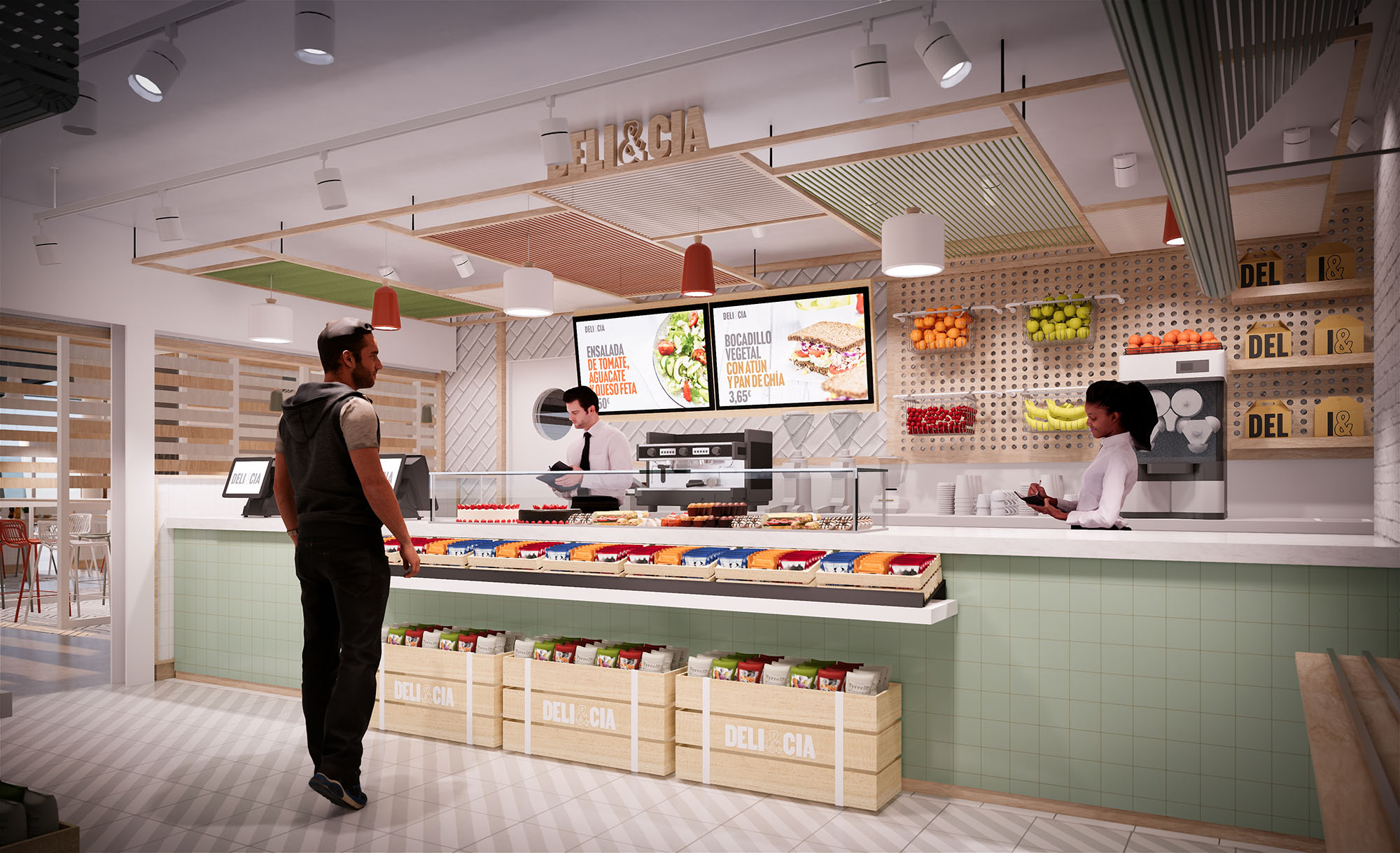 DELI & CIA is conceived as a contemporary fast-casual food concept that combines the spontaneity of grab-and-go with the warmth of a neighborhood deli. Across the different locations in Spain, Portugal, Chile and México, the design language remains consistent: a fresh, luminous environment that communicates transparency, health and everyday accessibility. The space is organized as an open market counter wrapped by islands of product display and casual seating, dissolving the boundary between kitchen, retail and dining.