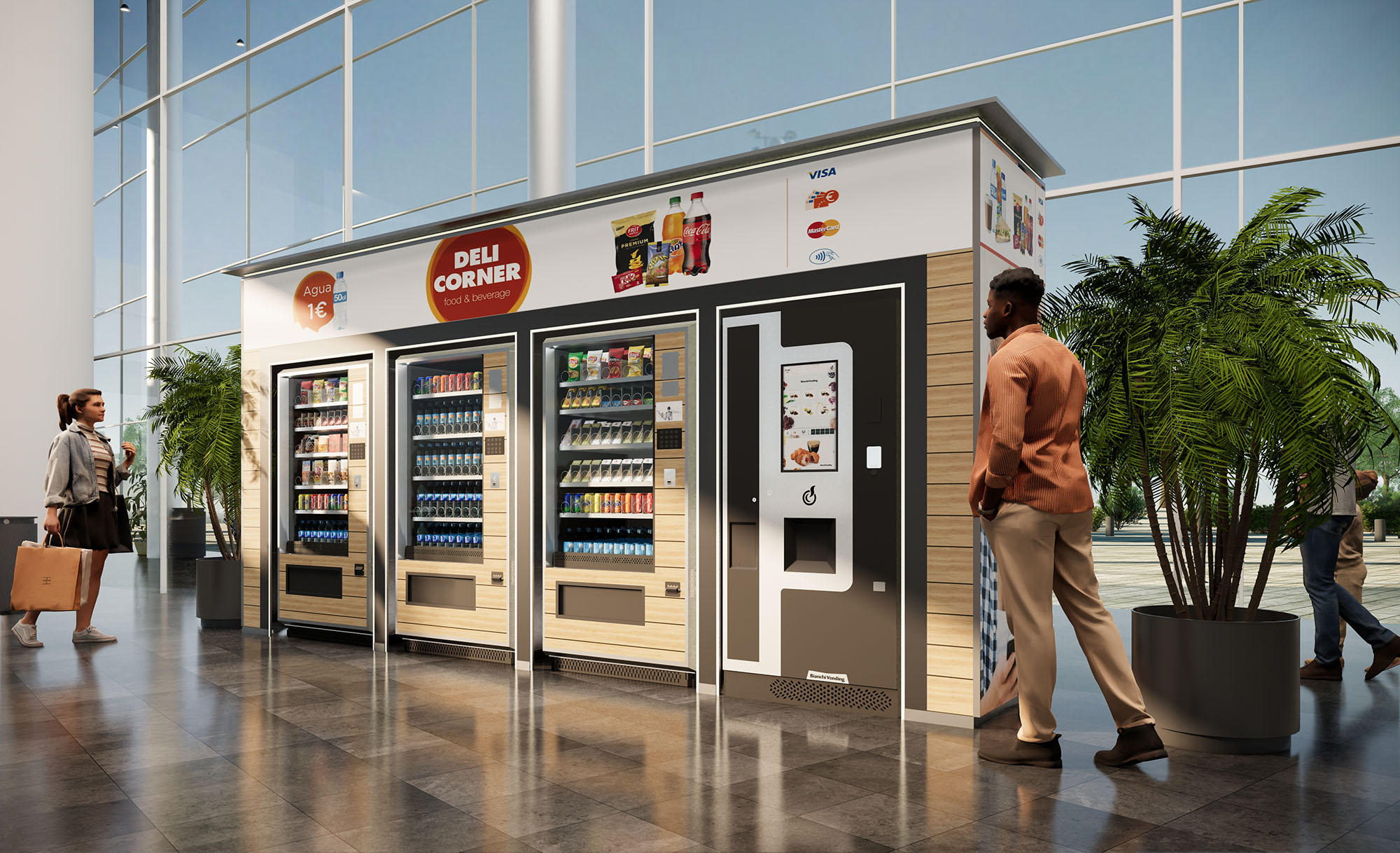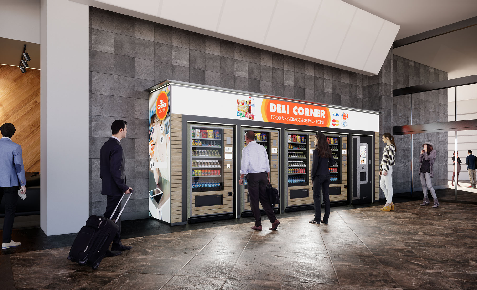 Deli Corner is conceived as a flexible, self-service food and beverage platform tailored to high-traffic transport hubs across Spain. The design responds to the rapid tempo of contemporary travel, offering an intuitive, automated service point that maintains the spatial quality and comfort of a traditional café. Architecturally, the concept operates as a lightweight architectural “plug-in” that can be inserted into existing concourses with minimal disruption, combining vending technology with a recognizable, cohesive brand environment.