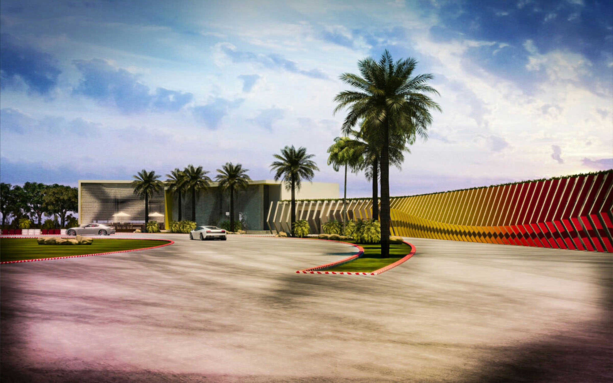 The design takes advantage of Cancún’s expansive horizon, composing long, low volumes that emphasize movement and perspective. The project’s geometry is guided by the logic of the racetrack: curves, acceleration lanes and visual vanishing points are echoed in the built forms, the circulation routes and the open spaces, creating a continuous spatial narrative from arrival to the most intimate technical areas.
